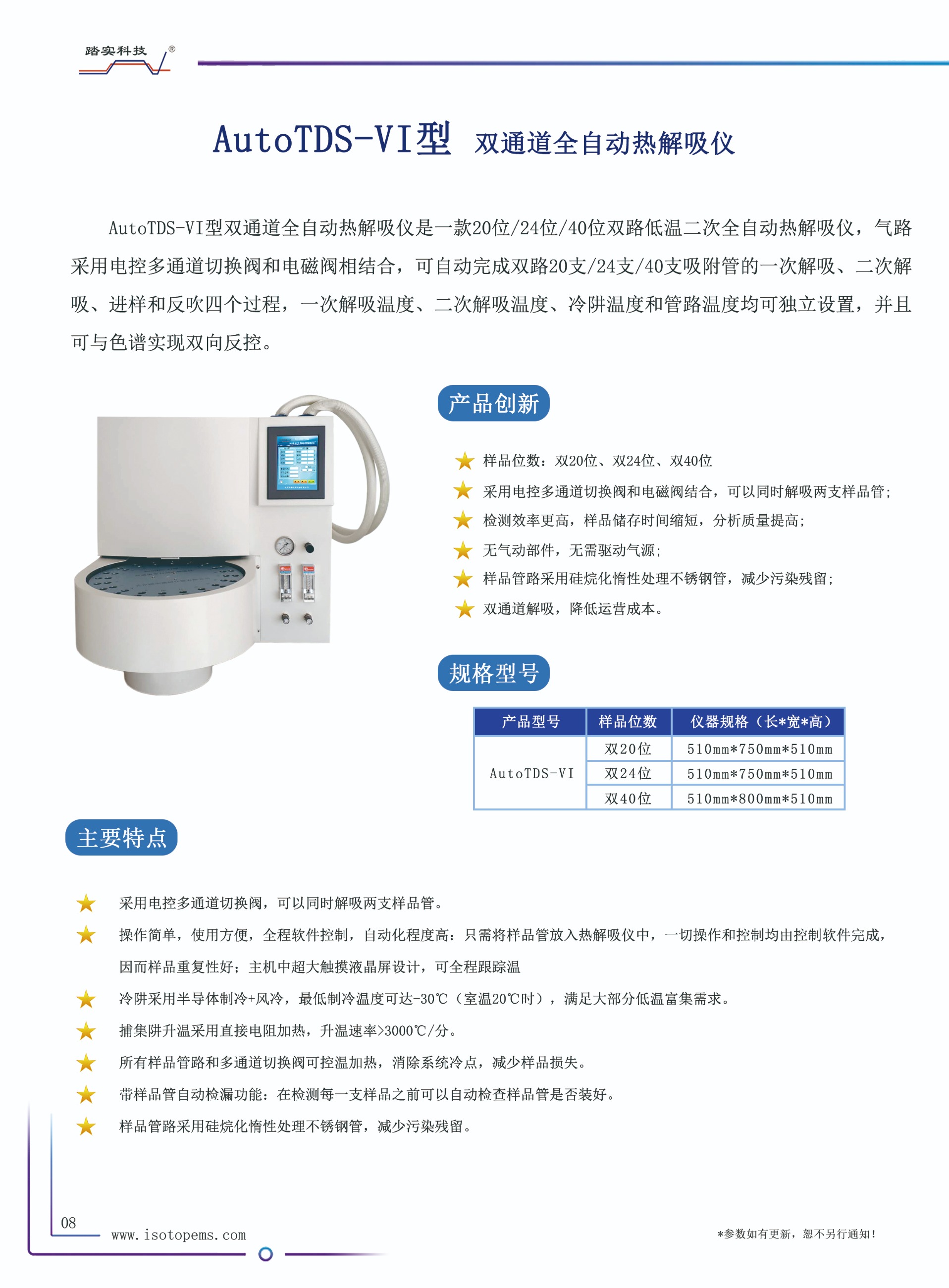 雙20位低溫二次全自動(dòng)熱脫附儀技術(shù)參數(shù):